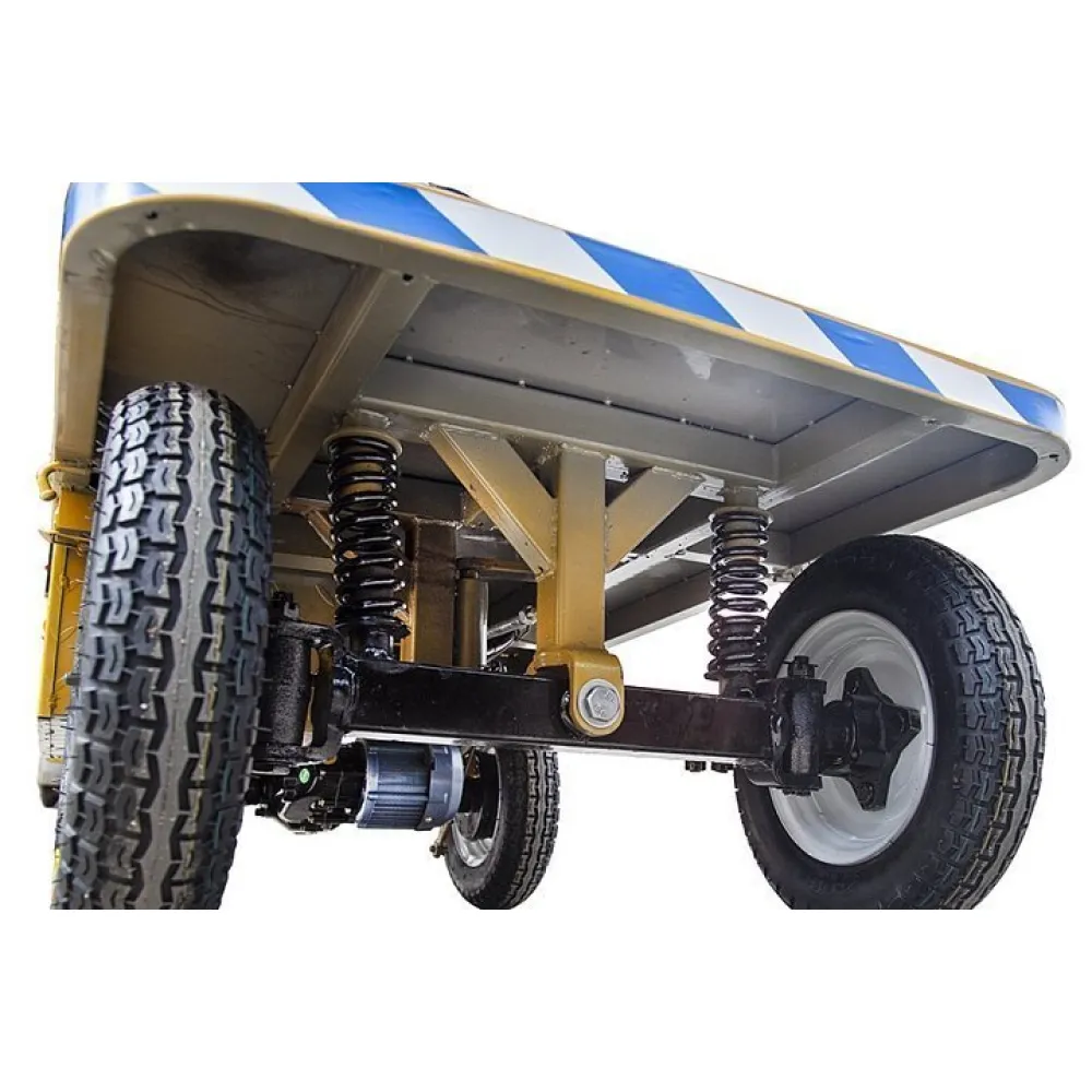 Плавность движения колесной части обеспечено амортизационными пружинами. Технические характеристики товара предполагают движение по прямой поверхности и на подъемы до угла 15 градусов. Эксплуатация компактной эргономичной элетротележки разрешена при температурном режиме -10С до +50С.