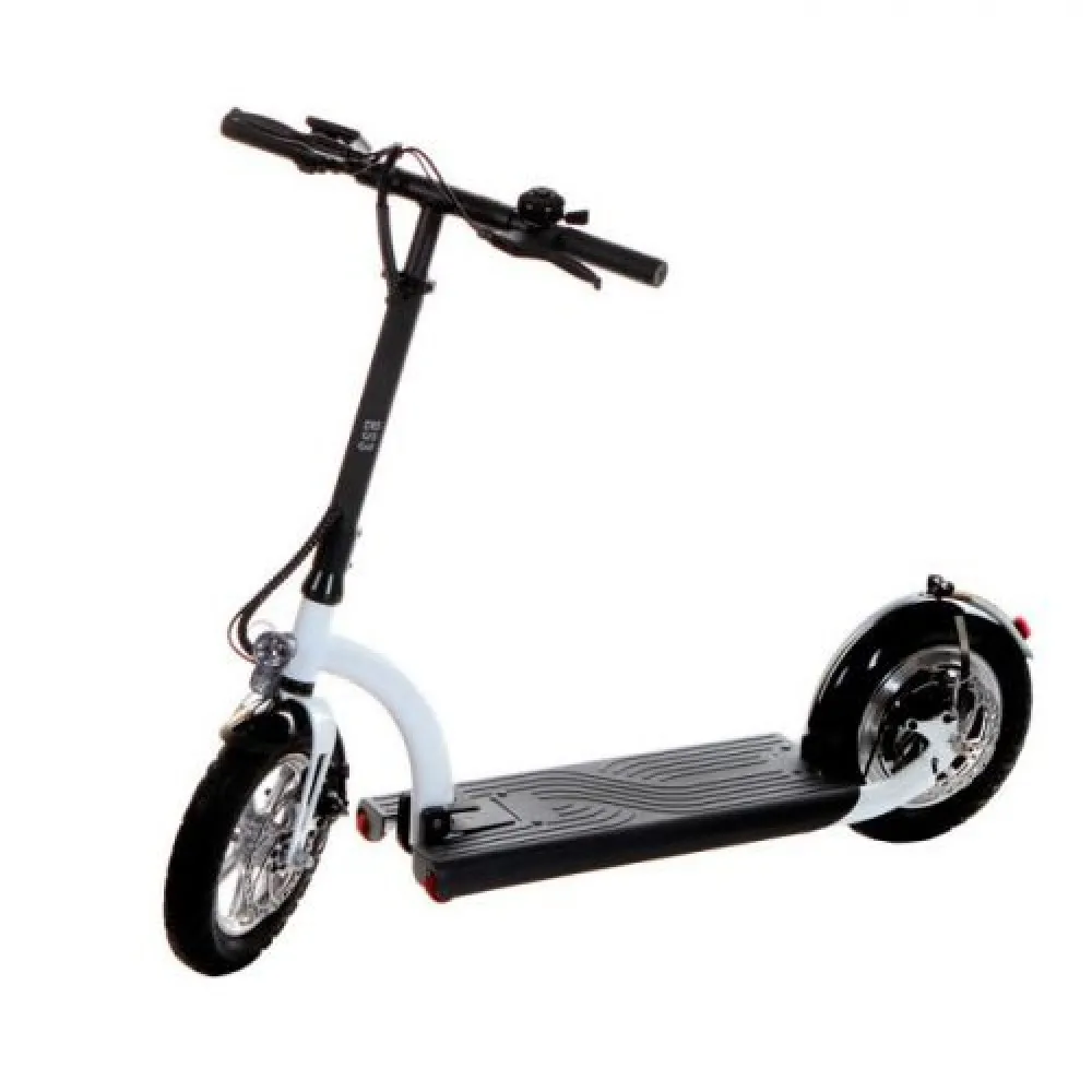 Мощность электросамоката составляет 500 Вт. Плавность хода обеспечена амортизаторами, роль которых выполняют накаченные колеса размером 12 дюймов. Модель предназначена для любителей активного отдыха, способна преодолевать расстояние на одной подзарядке до 35 км пути. Максимальная скорость техники – 35 км/час.