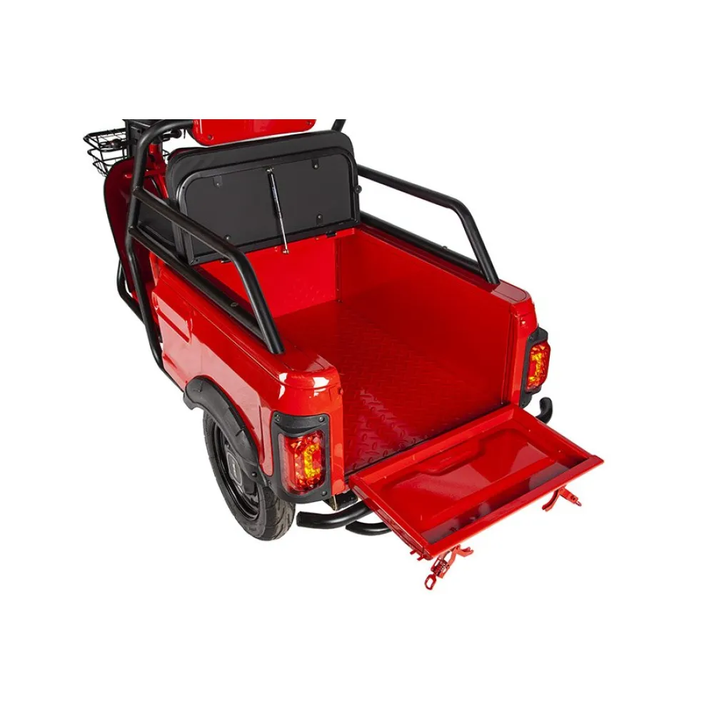 Модель оснащена мягким сиденьем, повторяющим анатомические части тела и снижающими нагрузку с позвоночника. Имеется дополнительное сиденье, благодаря которому одиночная прогулка превращается в удовольствие. Из дополнительных элементов и аксессуаров производитель выделяет вместительную переднюю металлическую корзину, зеркала заднего вида, мощную светодиодную фару, удобную нескользящую платформу для ног.
