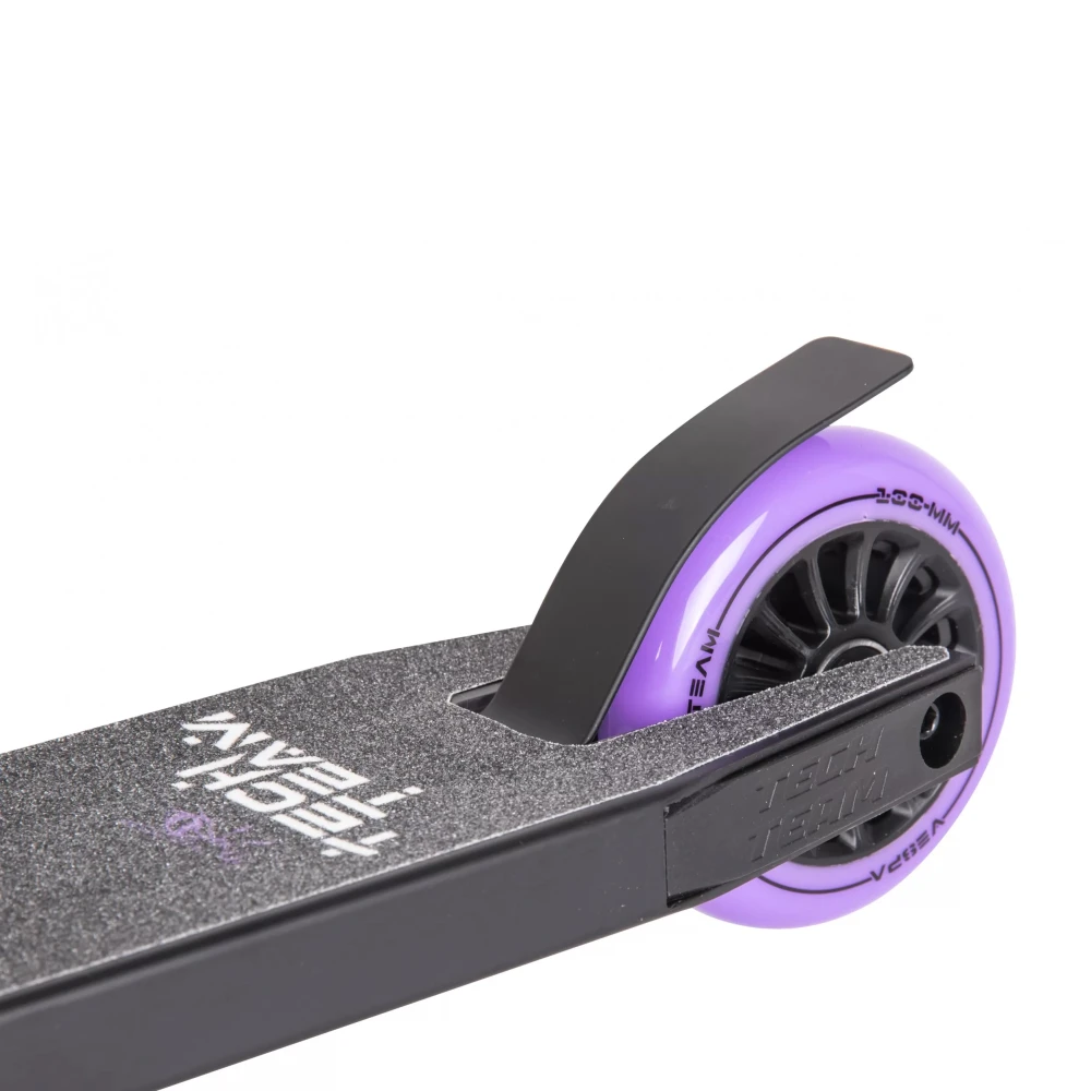 Небольшие размеры деки и рулевой части сделали технику удобной, компактной для начинающих райдеров. Покрытая нескользящей шкуркой дека увеличивает степень безопасности. Ширина допускает одновременное размещение стоп. Прорезиненные грипсы исключают соскальзывание рукути. 100 мм колеса из полиуретана накатистые и скоростные, рассчитаны на жесткую эксплуатацию. Своевременность торможения гарантирована задним тормозом.