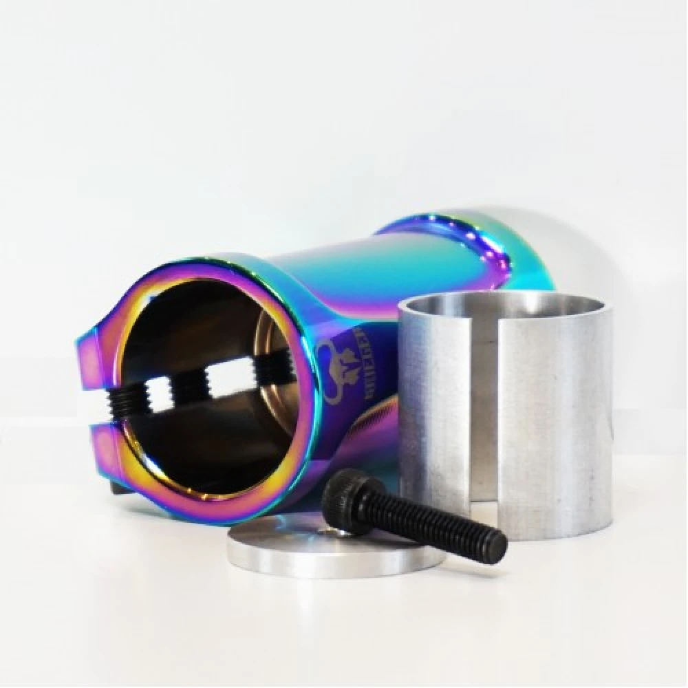 Алюминиевый хомут обеспечивает надежную фиксацию деталей между собой, исключает форс-мажорные ситуации во время выполнения трюков, увеличивает степень безопасности.